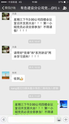 微信群、QQ群為施工一線基層黨員搭建了新平臺,切實改變單向、被動式的傳統學習模式,利用圖文、語音、視頻等多元化的形式,有效激發支部內青年黨員的學習交流熱情和興趣;實現了黨員之間“親密”“即時”“微距”的接觸、溝通、交流和學習,在日常微信互動中實時踐行“兩學一做”。